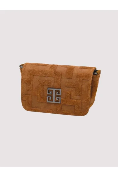 Τσάντα Agapi Leather Suede Cognac Embosse