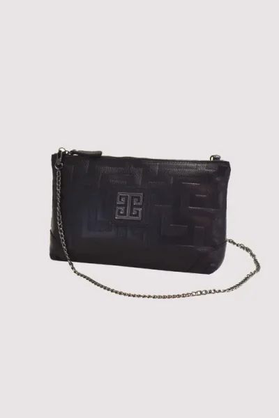 Τσάντα Thetis Small Leather Black Embossed