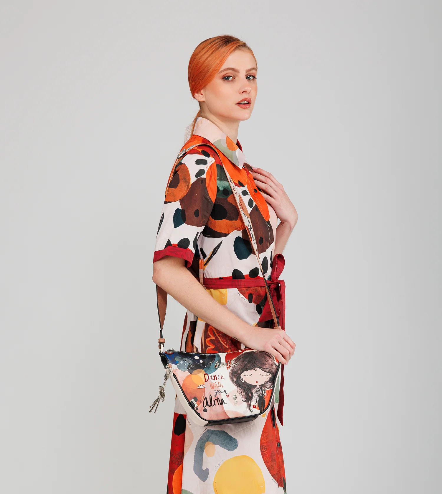 Η Οβάλ τσάντα χιαστί Alma συνδυάζει στυλ και πρακτικότητα, εμπνευσμένη από την Ισπανία και τις ρίζες της Anekke. Μεσαίου μεγέθους, διαθέτει φερμουάρ, εσωτερική φόδρα και τσέπες, καθώς και πίσω εξωτερική τσέπη. Ο ιμάντας ώμου ρυθμίζεται εύκολα για άνετη εφαρμογή. Ιδανική για καθημερινή χρήση με urban και κομψό στυλ.