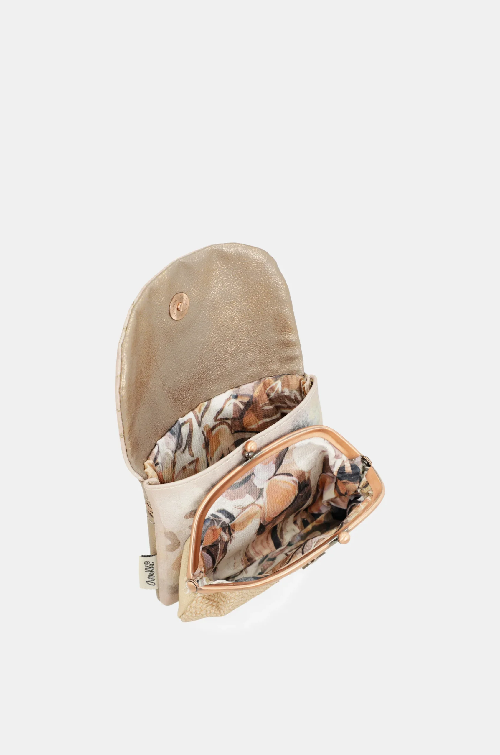 Το Anekke Memories πορτοφόλι με καπάκι είναι εμπνευσμένο από τα πιο χαρακτηριστικά στοιχεία των συλλογών της Anekke. Διαθέτει δύο κύριες θήκες – μία με κούμπωμα και μία πίσω – καθώς και φερμουάρ στο πίσω μέρος. Το εσωτερικό είναι πλήρως επενδυμένο. Ένα κομψό και πρακτικό πορτοφόλι για καθημερινή χρήση, γεμάτο στυλ και αναμνήσεις.