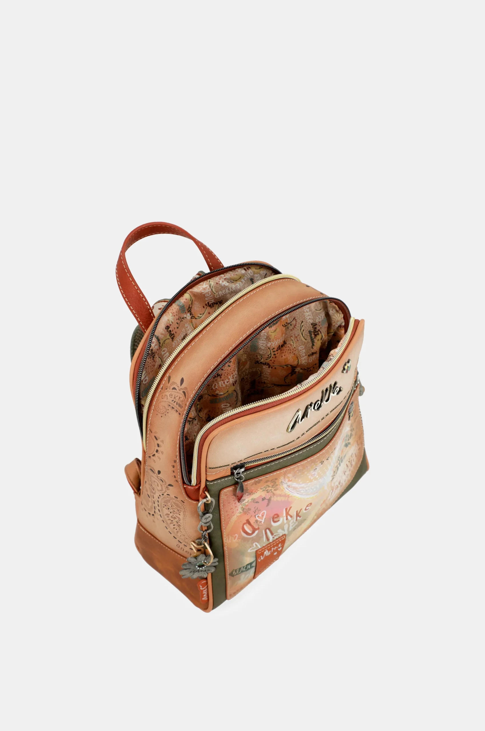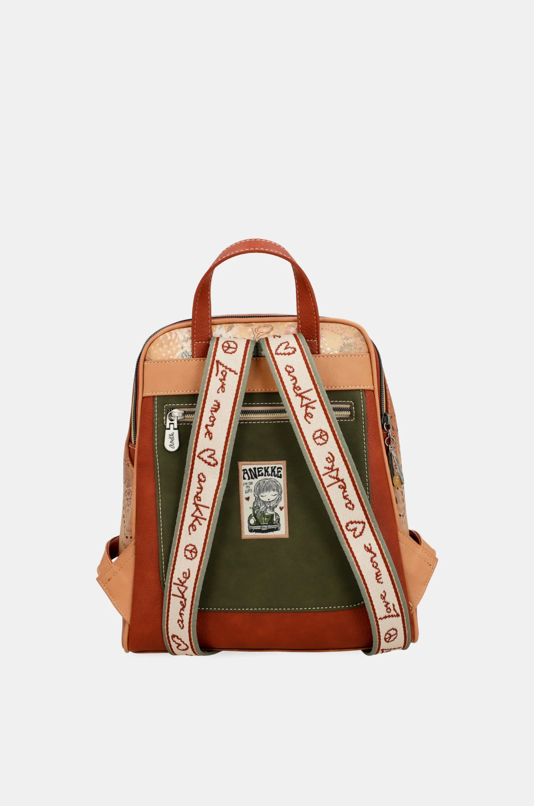Σακίδιο Flowers με δύο ξεχωριστές θήκες από τη συλλογή Anekke Peace & Love, εμπνευσμένο από το καλοκαίρι της αγάπης και το πνεύμα των 60s. Με φερμουάρ, μπροστινή και πίσω τσέπη, πρακτικές εσωτερικές θήκες και ρυθμιζόμενους ιμάντες πλάτης, γεμάτο λουλούδια, ειρηνικά σύμβολα και θετικά μηνύματα.