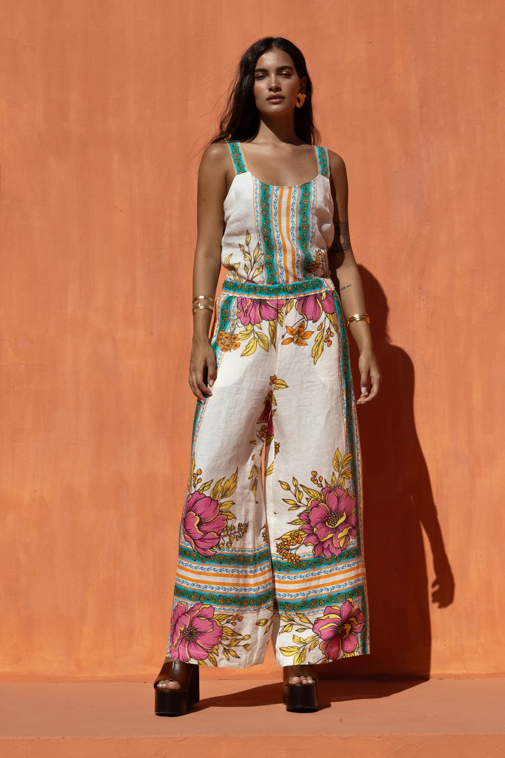 Φαρδιά παντελόνα με εντυπωσιακό floral print και ανάλαφρη κίνηση. Η άνετη εφαρμογή και το ανάλαφρο ύφασμα δημιουργούν κομψό και καλοκαιρινό σύνολο, ιδανικό για all-day chic looks.