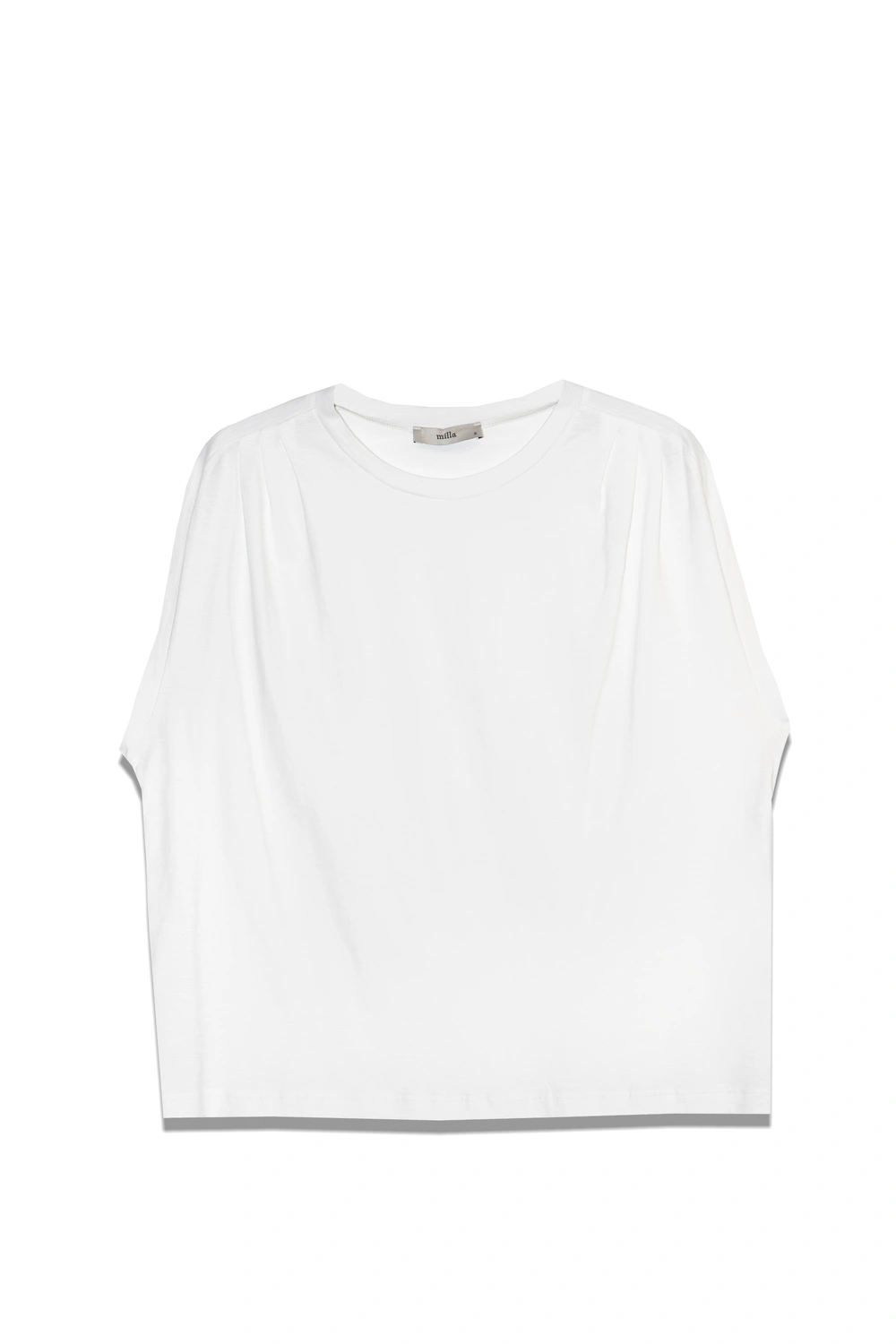 Ένα oversized λευκό t-shirt από premium βαμβακερό ύφασμα που αποδεικνύει ότι η αληθινή πολυτέλεια κρύβεται στην τελειότητα των απλών πραγμάτων. Η καθαρή γραμμή, η άψογη κοπή και η βαρύτητα του υφάσματος το ανεβάζουν πολύ πάνω από ένα απλό βασικό κομμάτι. Το θεμέλιο κάθε εκλεπτυσμένης γκαρνταρόμπας.