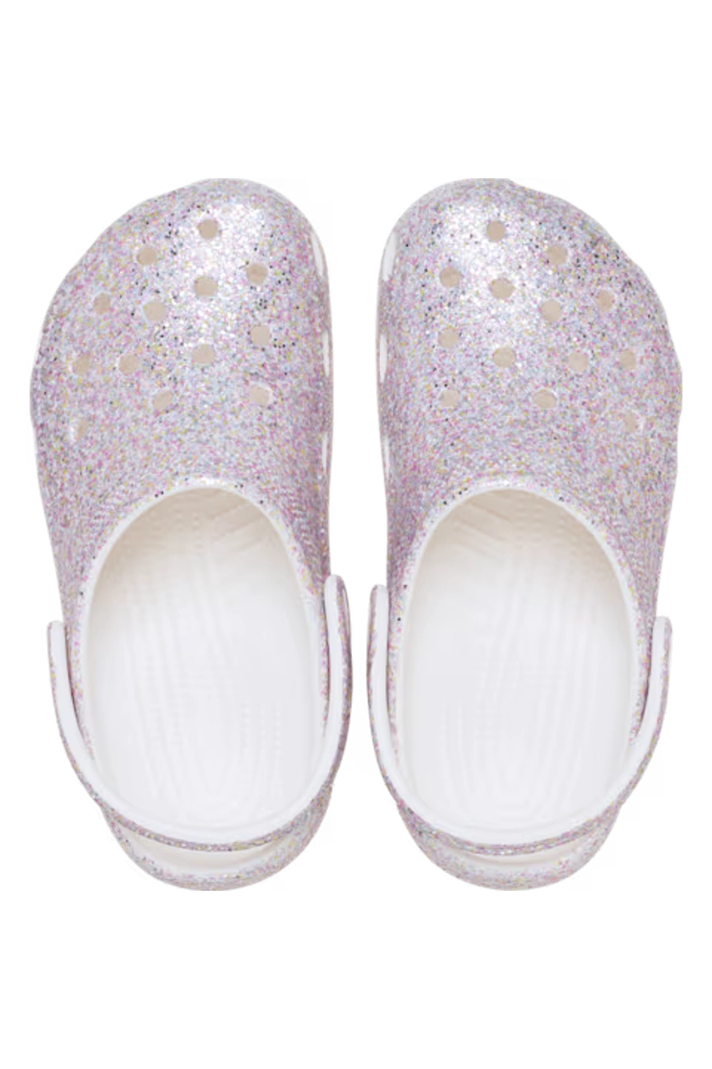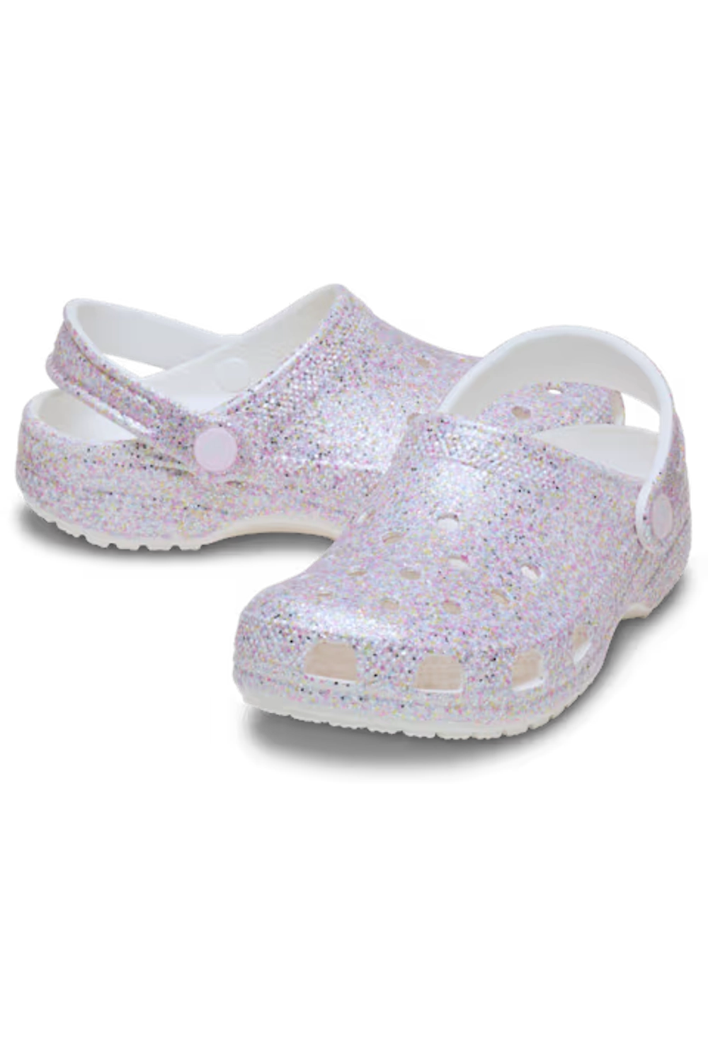 Η λάμψη συναντά τη φαντασία στο Kids’ Classic Fantasy Glitter Clog. Αυτή η μαγική αναβάθμιση του Classic Clog λάμπει με ένα ονειρεμένο μείγμα γκλίτερ σε διάφορα μεγέθη, εμπνευσμένο από μονόκερους και φανταστικά παιχνίδια. Είναι ελαφρύ, εύκολο στον καθαρισμό και γεμάτο προσωπικότητα — ιδανικό για παιδιά που αγαπούν λίγη παραπάνω λάμψη σε κάθε βήμα.