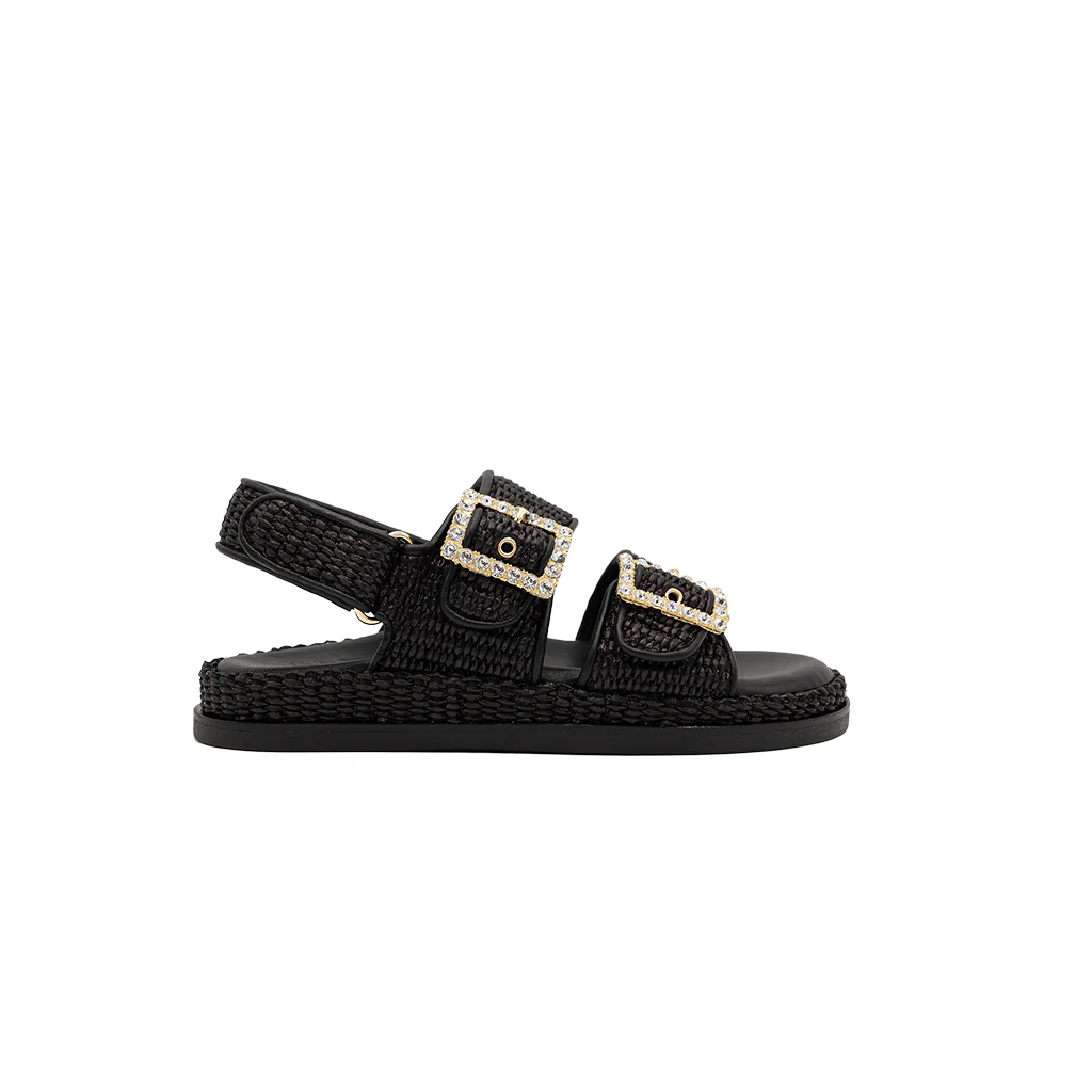 Ένας εκλεπτυσμένος σχεδιασμός και αποκλειστικές λεπτομέρειες κάνουν τη Maya την ιδανική επιλογή για όσες αναζητούν ένα σανδάλι για να επιδείξουν τις ζεστές καλοκαιρινές βραδιές. Το διπλό λουράκι, εμπλουτισμένο με μεταλλικές πόρπες με στρας, αναδεικνύεται από αντίθετες δερμάτινες ακμές που ορίζουν την κομψότητά του.