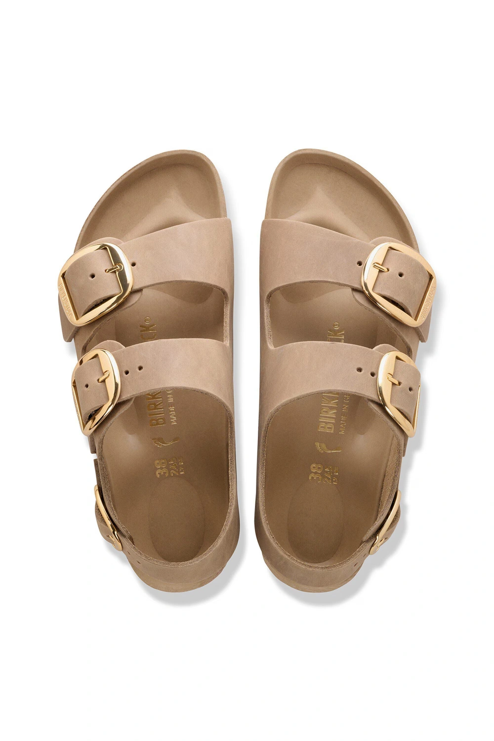 Μέγιστη πρόσφυση, σταθερότητα και τέλεια εφαρμογή! Το Birkenstock Milano προσφέρει όλα αυτά χάρη στον συμπαγή σχεδιασμό του με λουράκι στον αστράγαλο. Η έκδοση Big Buckle διαθέτει μια μεγάλη, κομψή μεταλλική αγκράφα – ένα εντυπωσιακό στοιχείο που τραβάει τα βλέμματα σε αυτό το κατά τα άλλα διακριτικό σανδάλι. Η επένδυση του ημι-πολυτελούς πέλματος είναι καλυμμένη με απαλό, λείο δέρμα και ταιριάζει χρωματικά με το παπούτσι. Το επάνω μέρος είναι κατασκευασμένο από εξαιρετικά παχύ, λαδωμένο nubuck δέρμα με ακατέργαστο τελείωμα.