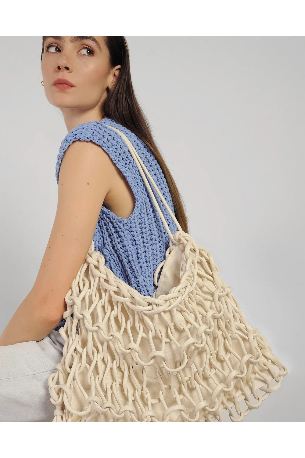 - Χειροποίητη υφαντή τσάντα κατασκευασμένη από φυσικό κερωμένο βαμβακερό σχοινί