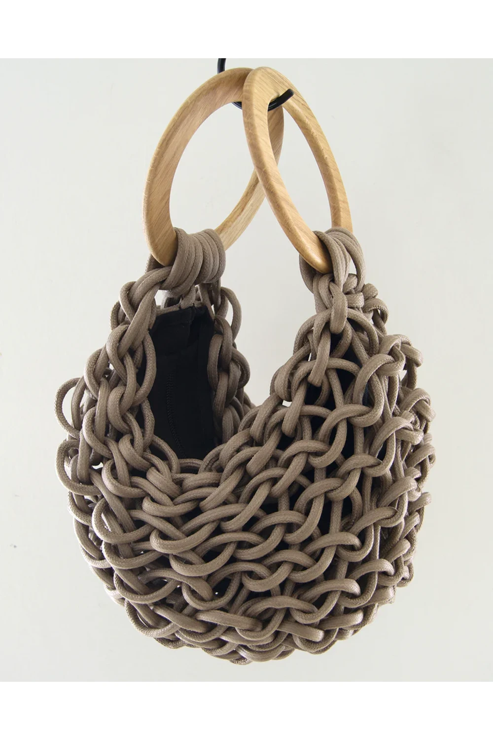 - Χειροποίητη υφαντή τσάντα κατασκευασμένη από φυσικό κερωμένο βαμβακερό σχοινί και μοναδικό ξύλινο χερούλι