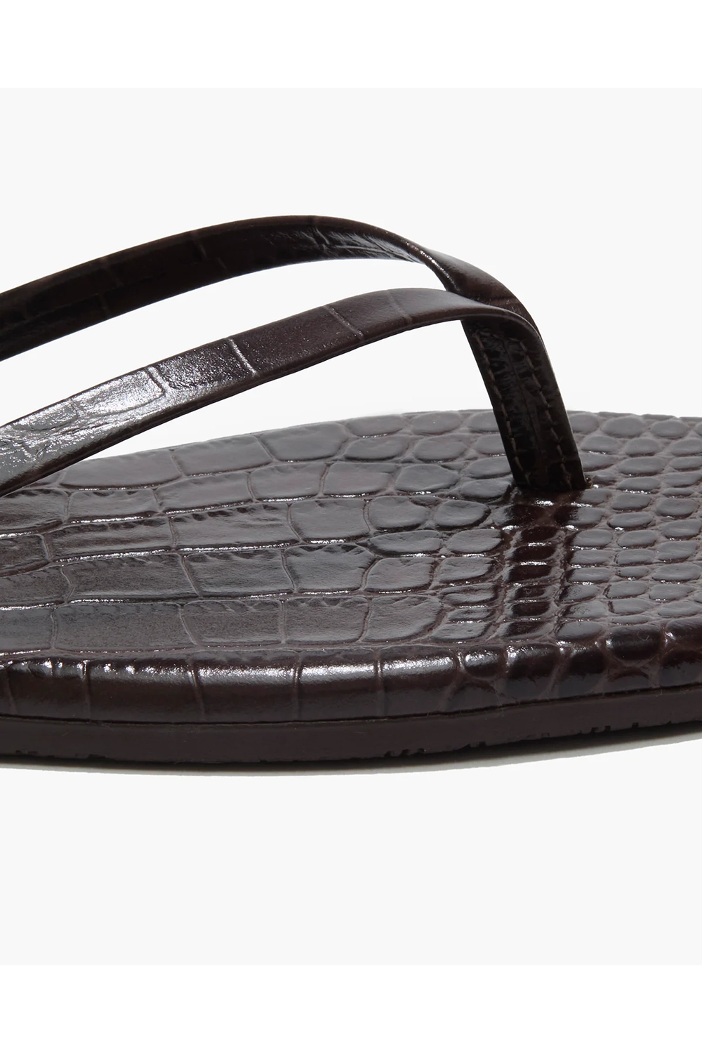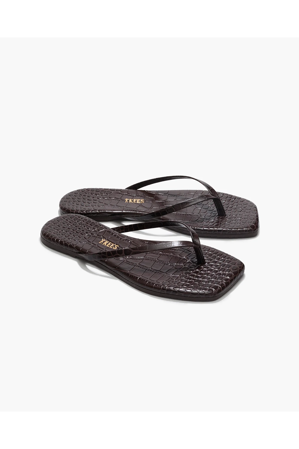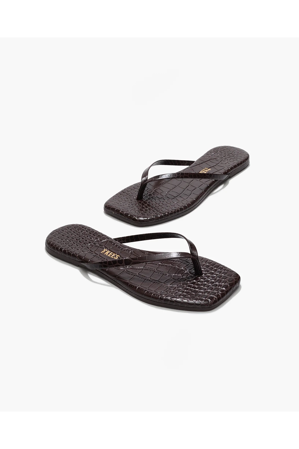 Ένα κλασικό δέρμα με ανάγλυφο μοτίβο κροκοδείλου σε συνδυασμό με τη μοντέρνα τετράγωνη σιλουέτα μύτης.