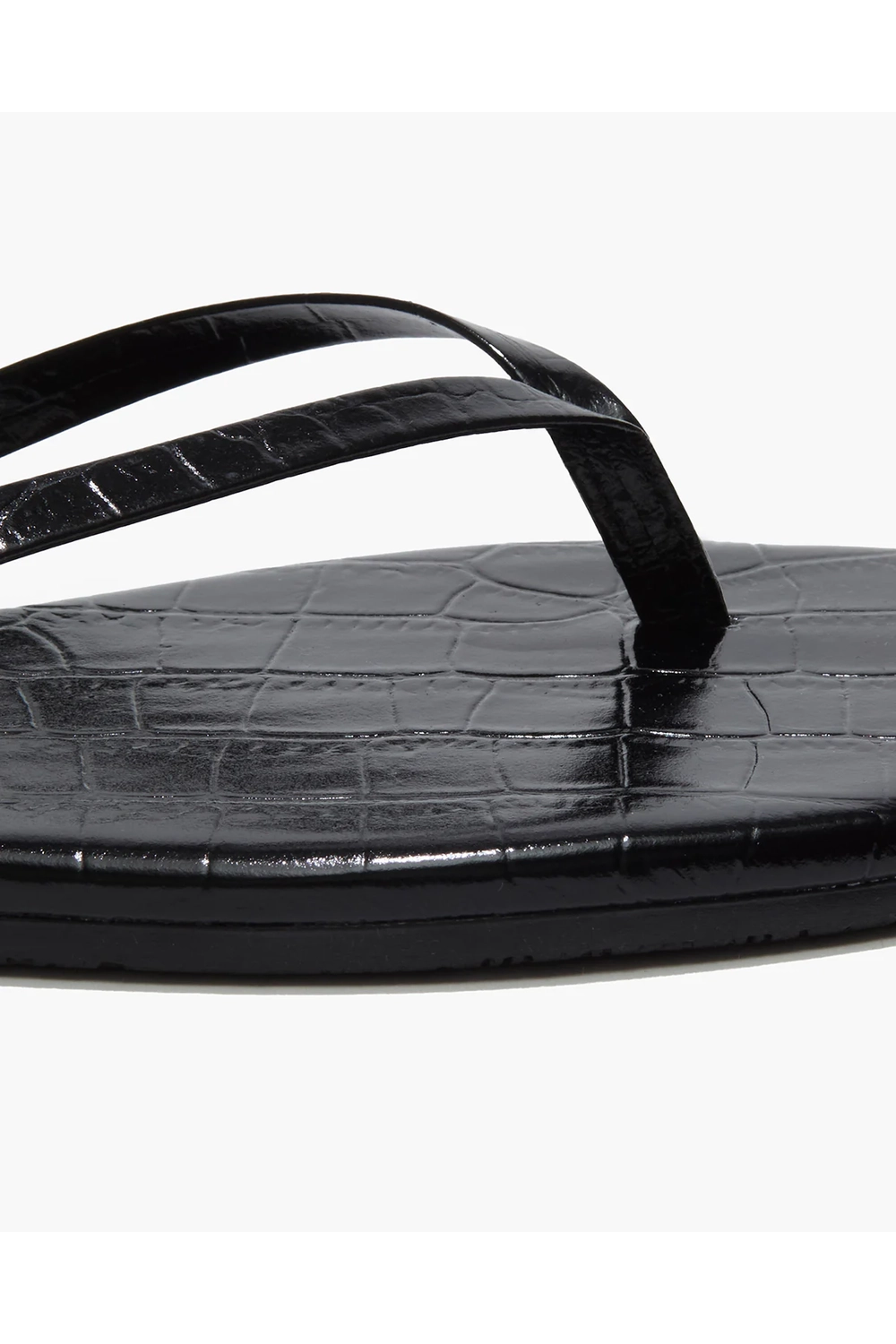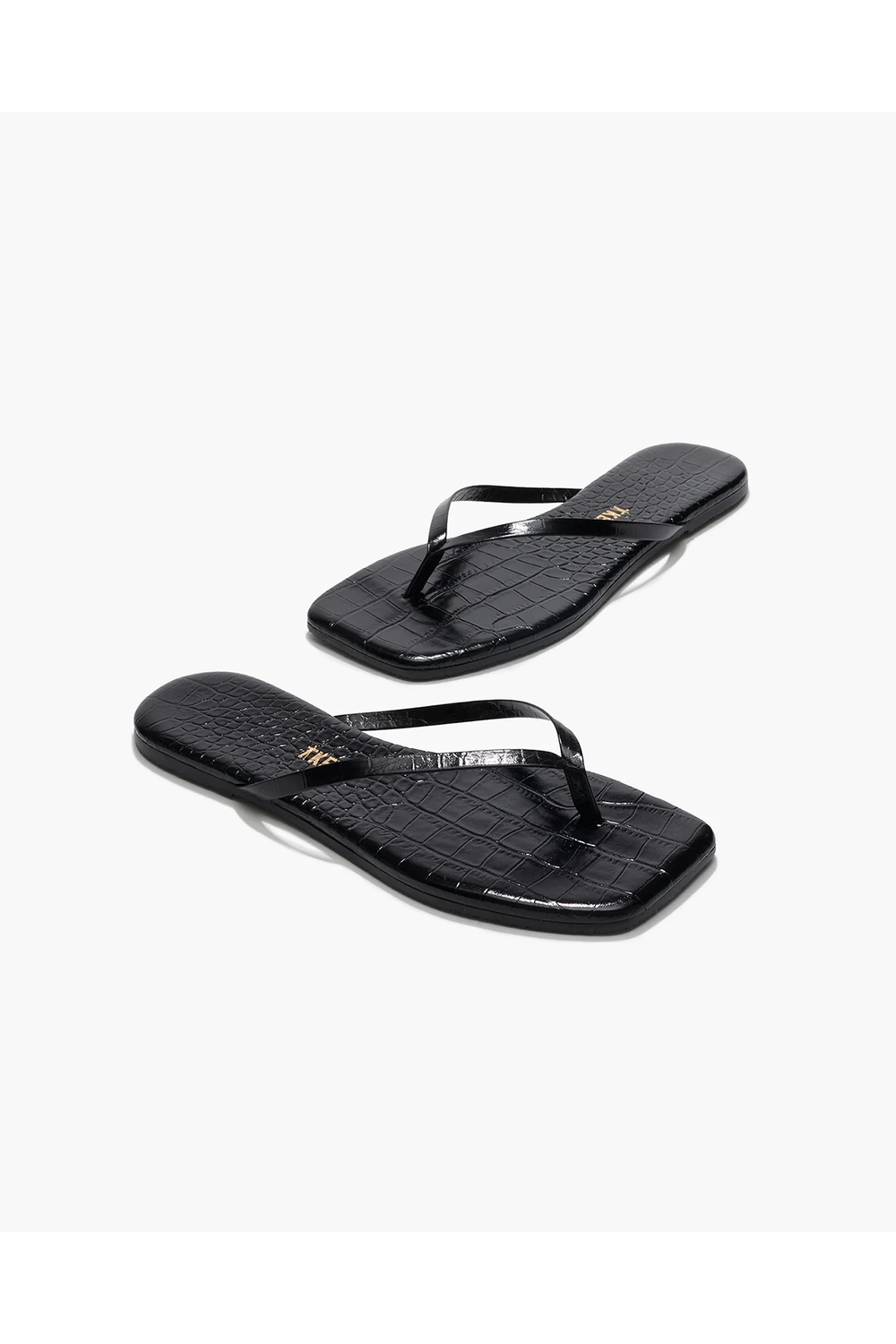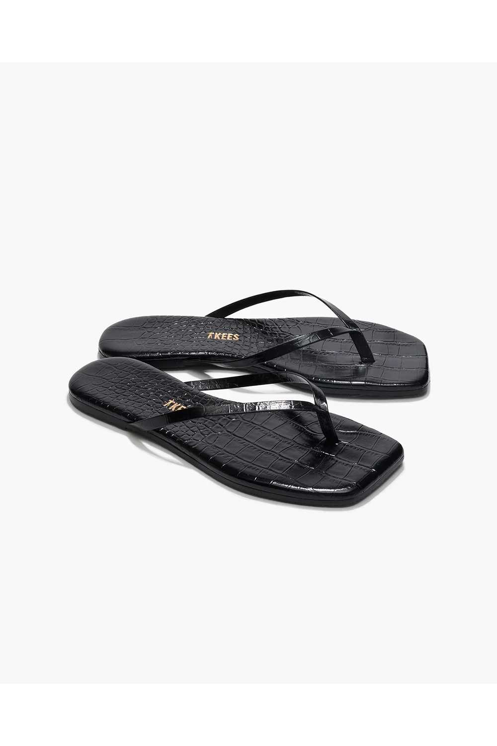 Ένα κλασικό δέρμα με ανάγλυφο μοτίβο κροκοδείλου σε συνδυασμό με τη μοντέρνα τετράγωνη σιλουέτα μύτης.