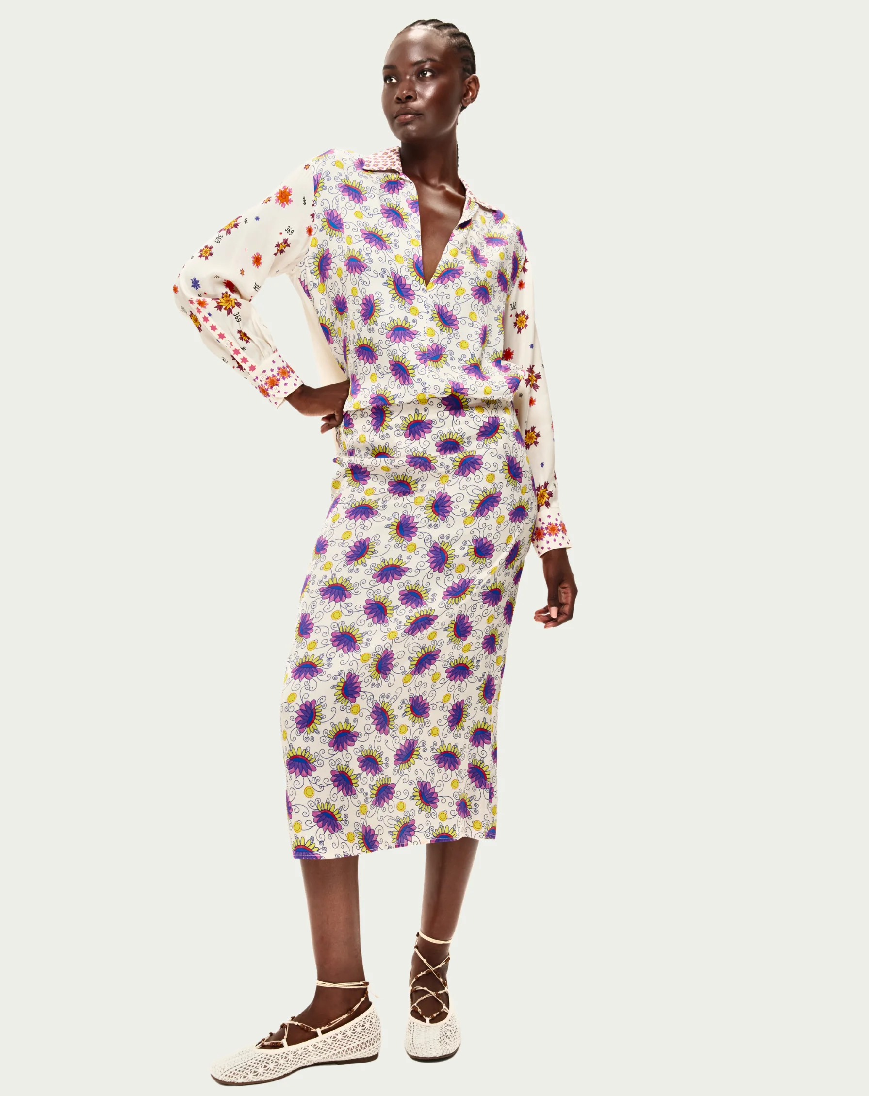 Διαδώστε τη χαρά με το πουκάμισο Tori από τη συλλογή Markers, που διαθέτει το έντονο μήνυμα «SMILE ALWAYS!» στην πλάτη, μαζί με χαρούμενα κίτρινα smiley faces σε πορτοκαλί και κόκκινες αποχρώσεις. Ζωγραφισμένα στο χέρι λουλούδια σε πορτοκαλί, ροζ και μωβ είναι διάσπαρτα στα κρεμ μανίκια, ενώ ο γιακάς αναδεικνύει ένα ροζ φλοράλ μοτίβο.